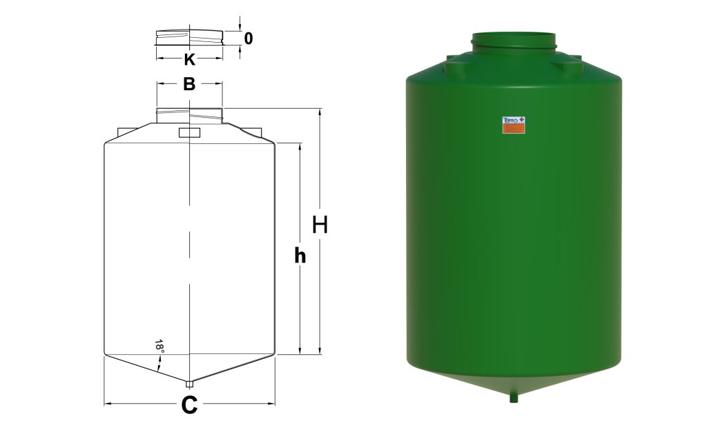 Bồn nhựa pe chứa hóa chất 4000l CENA4K0E có hình dạng đáy phễu chứa hóa chất hay còn tên gọi khác là bồn chứa hóa chất đáy côn đặc biệt ứng dụng khi Khách hàng cần sử dụng triệt để dung dịch, hóa chất trong bồn đựng hoặc xả cặn bẩn trong bồn.