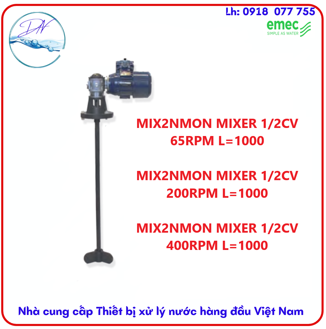 - Máy khuấy hóa chất Emec MIX2NMON dùng để khuấy tất cả các hóa chất, các dung dịch dược phẩm, thực phẩm,… cho bồn chứa hóa chất có thể tích từ 1000L- 1500L, đặc biệt kết hợp tạo thành hệ thống bơm định lượng Emec-Italy, Bồn khuấy hóa chất Pakco/Thái Lan.
