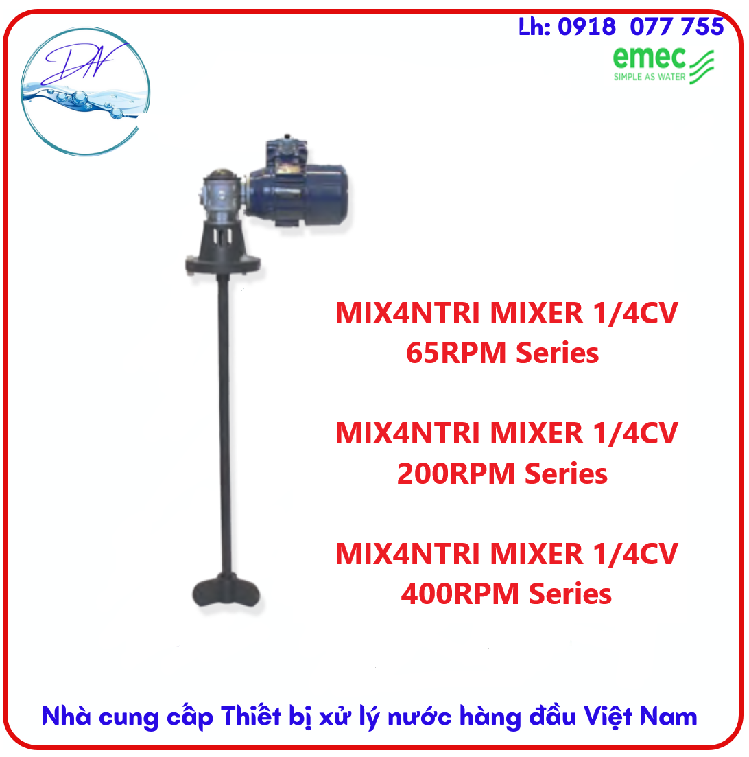 - Máy khuấy Emec MIX4NTRI dùng để khuấy tất cả các hóa chất, các dung dịch dược phẩm, thực phẩm,… cho bồn chứa hóa chất có thể tích từ 200L- 1000L, đặc biệt kết hợp tạo thành hệ thống bơm định lượng, Bồn khuấy hóa chất Tema/Thái Lan
